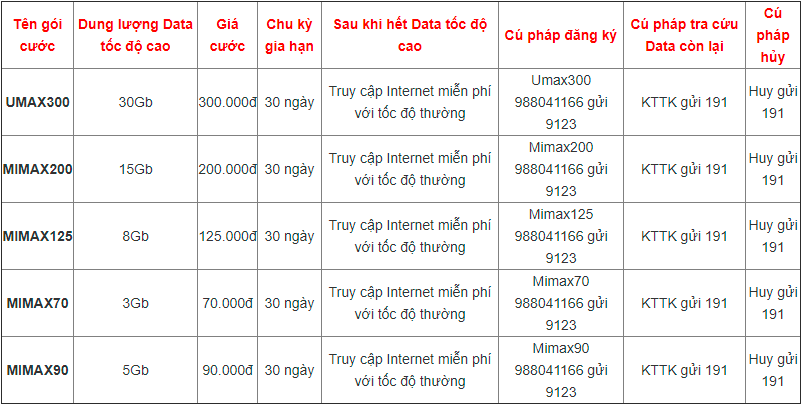 - Nếu bạn muốn sử dụng data trọn gói trong cả tháng mà không bị tính phí phát sinh vượt gói thì UMAX300 chính là một sự lựa chọn phù hợp cho bạn.